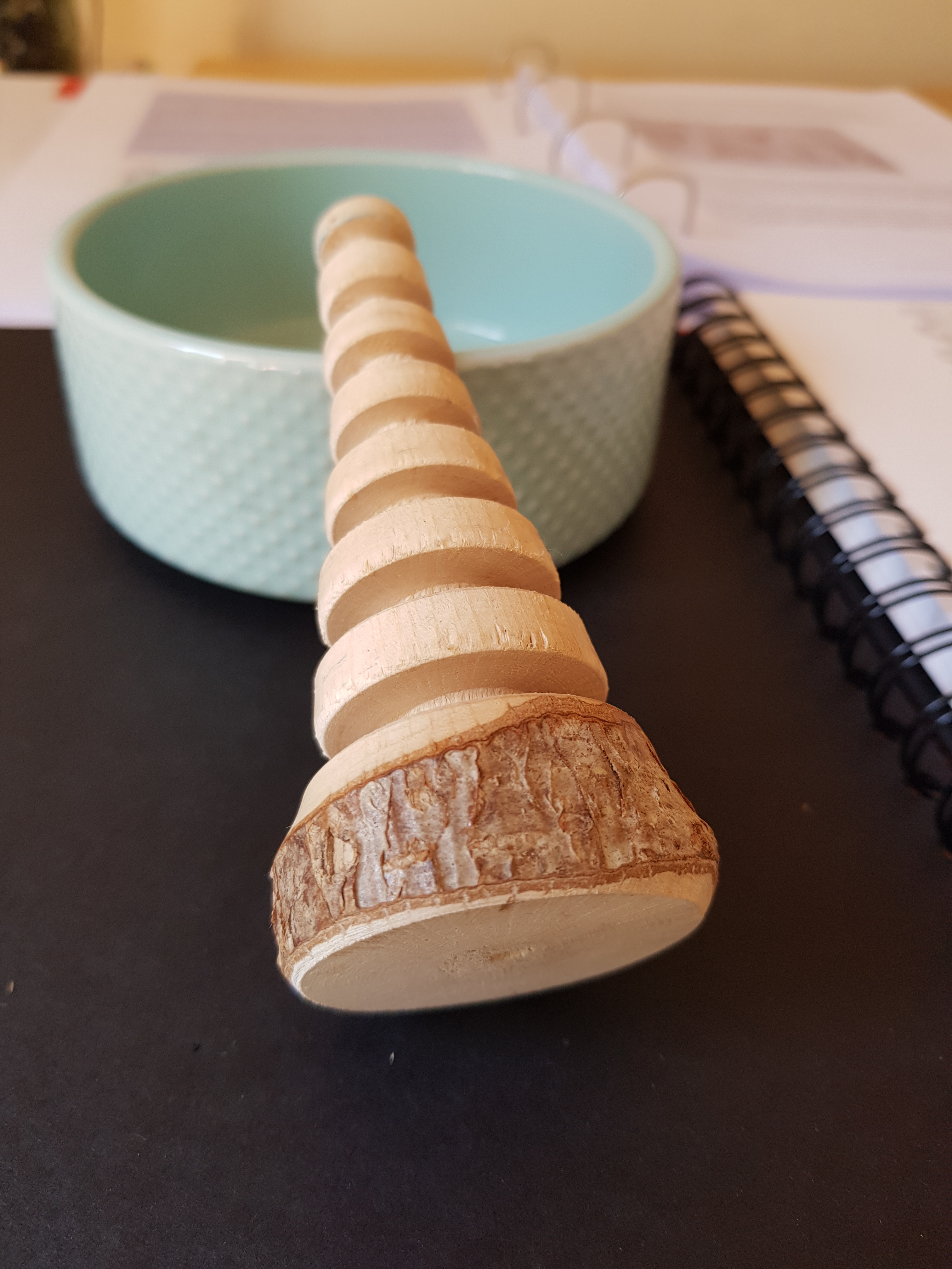 This small xmas tree is refined, smoothed and machined, except for base, which still has bark on it.