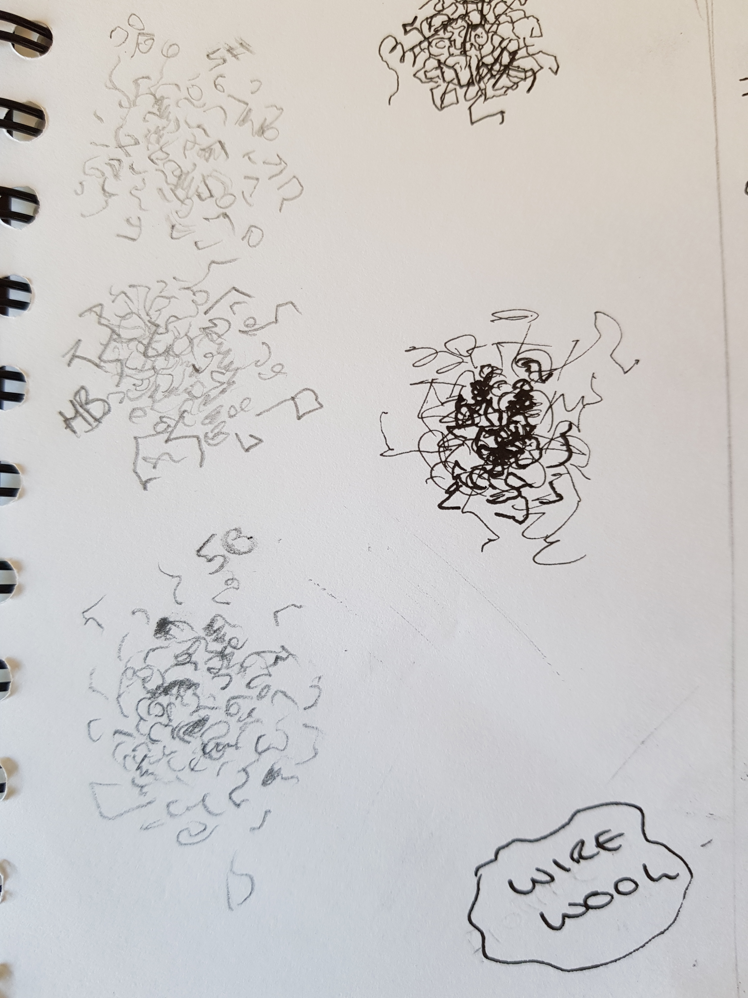 Wire wool was quite hard to draw. Sharp edges, shade, reflection and shine are all through the object. I tried differend grades of pencil and drawing pens. Think the 5H pencil may be best?