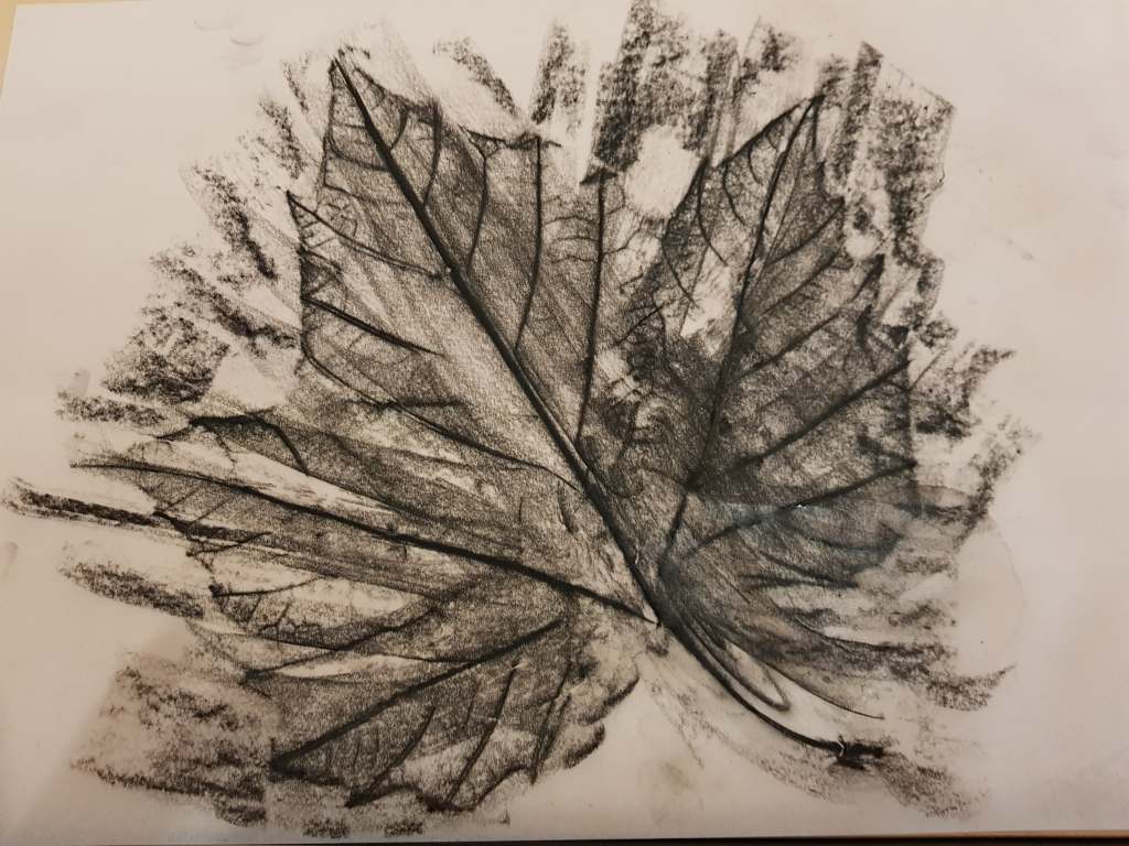 Frottage Posted bysuzi September 8, 2019September 27, 2019 Leave a comment on Frottage I was pleased with this effect.- leaves and baked bean tin rubbed onto patterned tissue paper I really liked this – enjoyed doing it – charcoal rubbed on to material wrapped around a a washing ball!. I think it looks like a stone fish. a Share this: Share on X (Opens in new window) X Share on Facebook (Opens in new window) Facebook Like Loading... Related