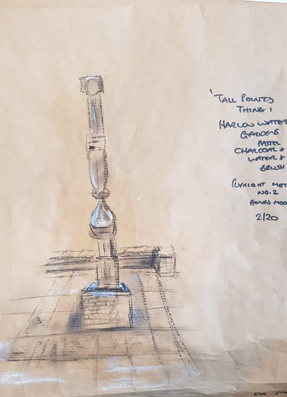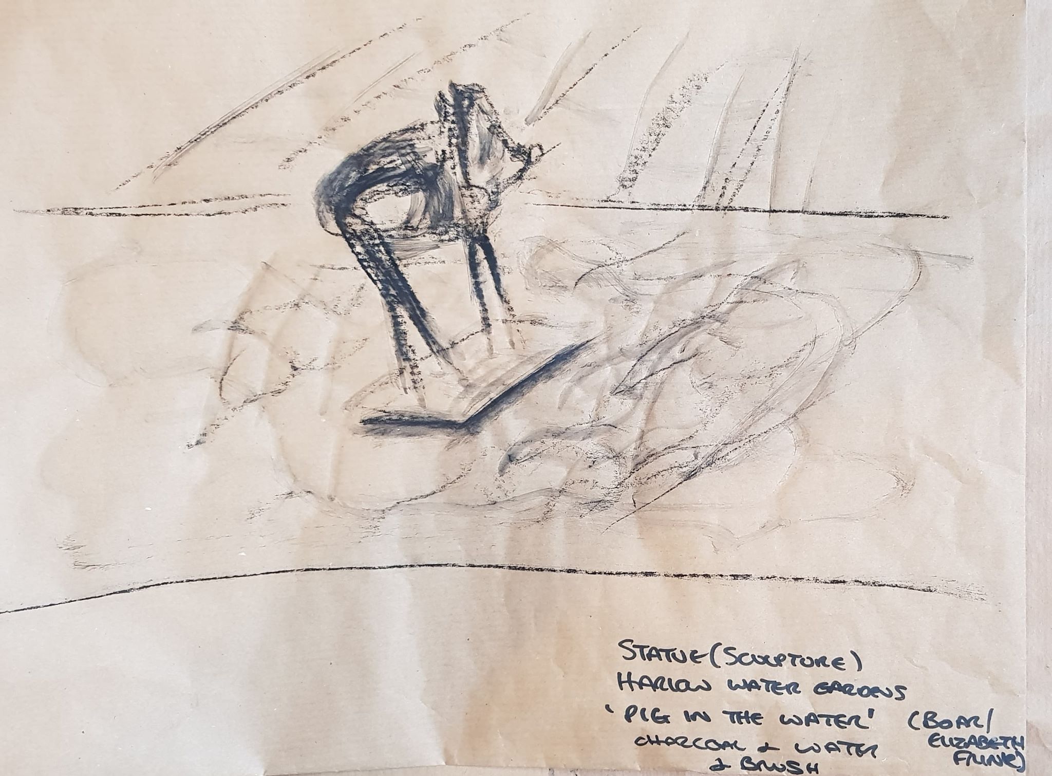 I quite enjoyed drawing statues. Harlow Town is very near where I live (its where I grew up – and I’m rather fond of the place) and actually calls itself ‘sculpture town’. There is a sculpture trail in the town – I’ve put a copy of the trail pamphlet in my sketchbook. The sculptures amuse me as they appear randomly in a ‘warts and all’ new town built of grey concrete and paving stones. You will be greeted by a Henry Moore when you come out of Pizza Express, a Rodin when you come out of Next etc. Everyone treats them like part of the furniture. I used to climb and sit on the Henry Moore family group when I was a child (they moved it in to the Civic Centre a few years ago – to keep it safe).