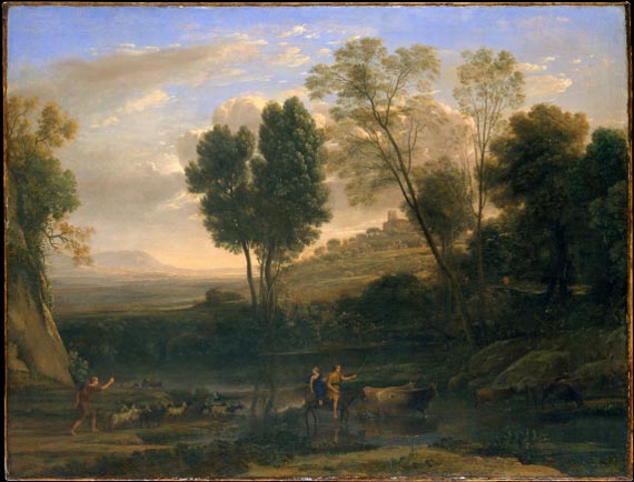 Lorrain’s landscapes are very often described as ‘classical’. I understand that this means he was following a certain style, thought of as idealistic in its time. Idealistic in rules of perspective and proportion. Artists of the time looked back to ancient Rome and Greece for inspiration and direction.