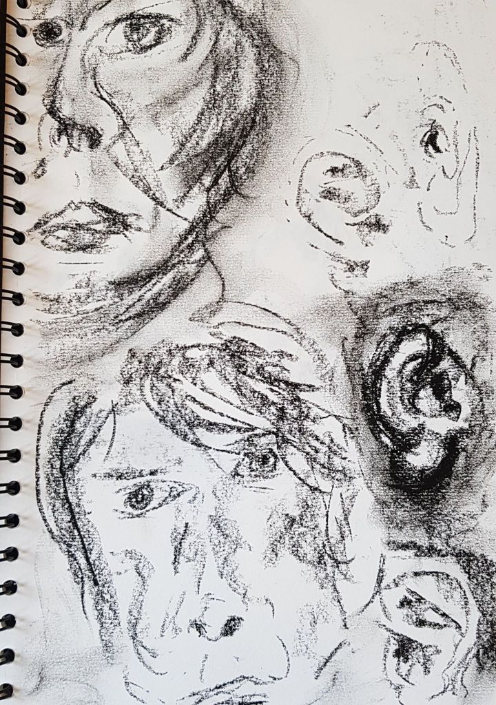 Above: Charcoal sketches in an A4 sketchbook