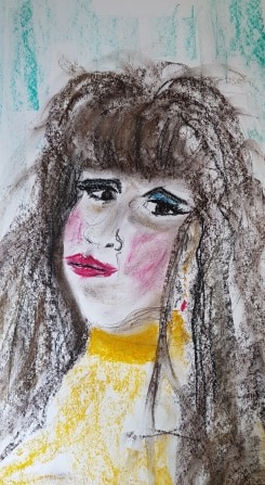 Above was meant to be from my imagination – just looks like me with long hair! It was a bit childlike and basic. I liked the punchy colours though. So I had another go at the imagined face. See below
