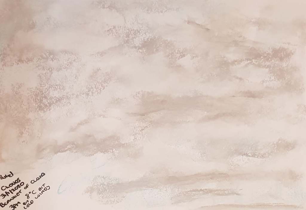 I found cloud drawings satisfying and liked the effects of the pastels and charcoal when experimenting with creating the impression of clouds