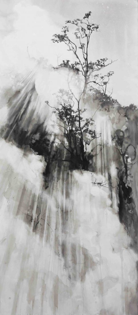 EMMA STIBBON, Steam Vent, 2017, Black ink, volcanic ash and carbon,