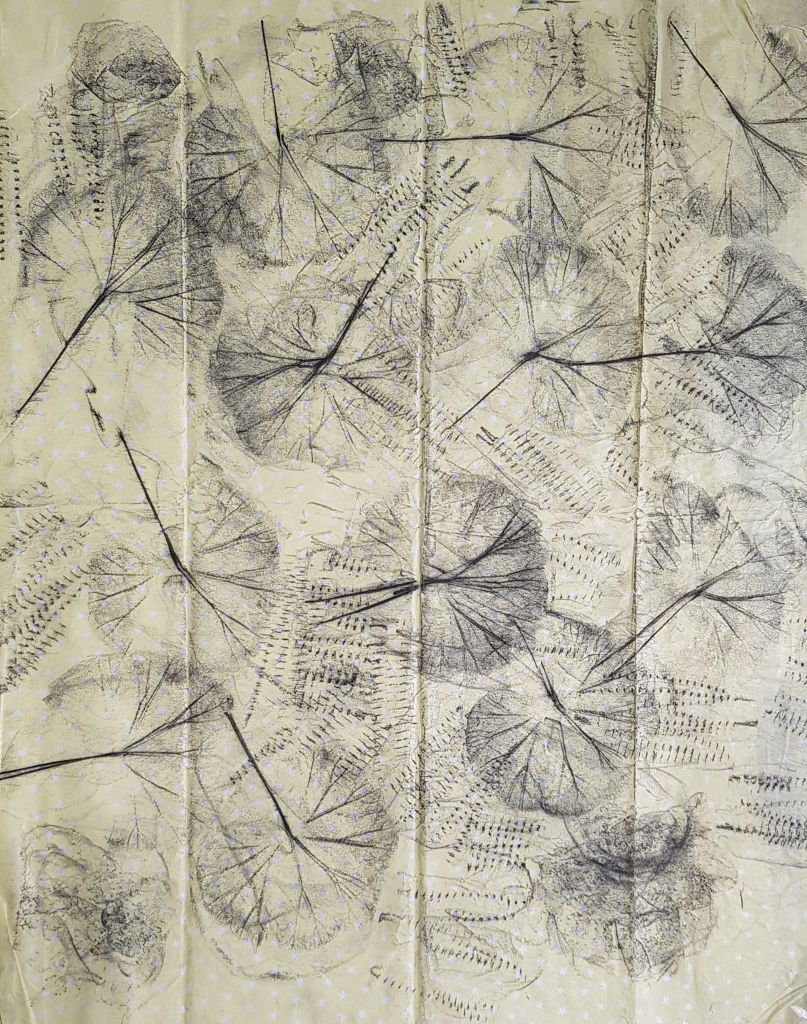 I knew I wanted to use a different kind of ‘support’ than I had tried before, along with a different scale (large) of work. I wanted to demonstrate interest and power. Hence, I had to do some tests with drawing larger scale. I also tested some surfaces and papers.