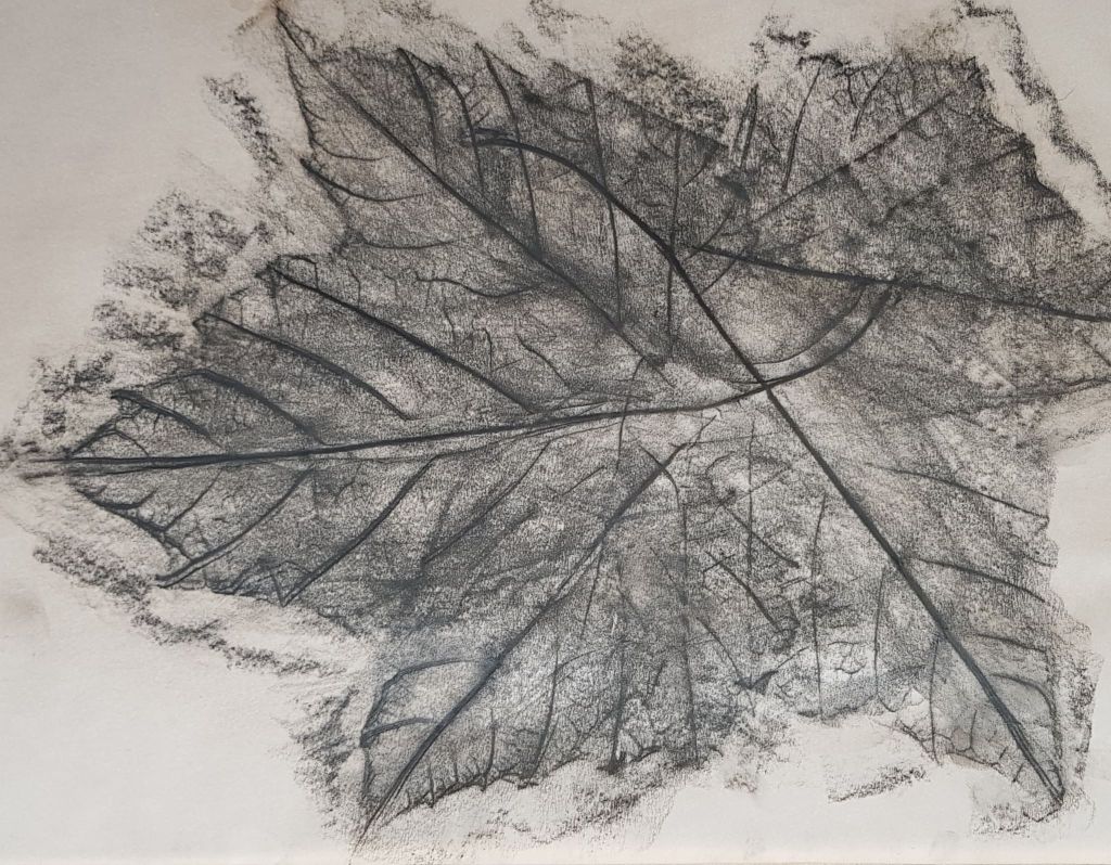 I had some success using different papers to work on, besides standard white sheets. I used tracing paper, tissue paper and brown paper in some of the exercises. These papers created different feelings and outcomes. The brown paper feels less precious – promoting looser, braver drawing. The tracing paper was translucent and the light shining through was an interesting effect. The tissue paper emphasised how delicate the natural structures were that were drawn onto it. The frottage method also added to the effect of delicacy and being more in touch with the natural structure. I have gone on to experiment with different papers in later parts of the course, but I need to develop this further. I was not as brave as I would like to be with using different materials.
