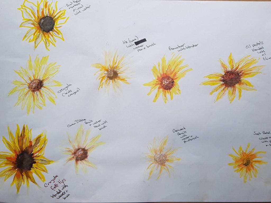 My successes in this part of the course were experimenting with different materials in my sketchbook and on separate larger sheets.