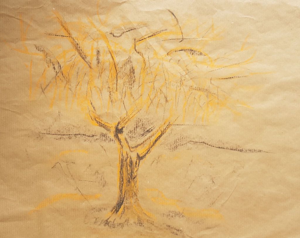 I enjoyed the tree sketches and these images were fairly pleasing. I tried using different coloured paper for them, e.g. black and brown. This did make the images more free and loose. I experimented with coloured pastels.