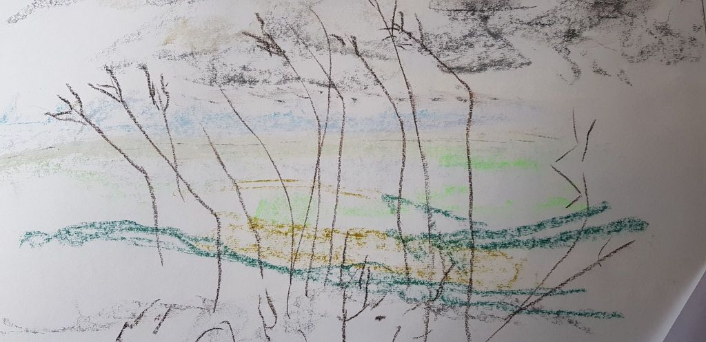 I found cloud drawings satisfying and liked the effects of the pastels and charcoal when experimenting with creating the impression of clouds