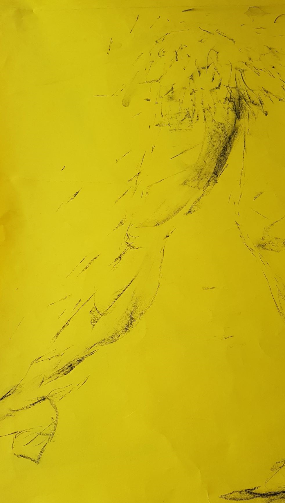 I experimented with using yellow paper. I thought this made the image more dynamic – as a stark contrast to black marks.