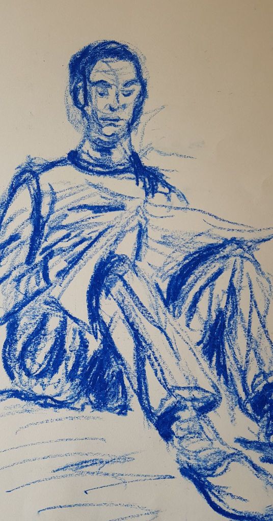 I was using a range of materials at the class – some with a little success, some less so. I used drawing pen, pastel, pencil, charcoal. It was a brilliant educational experience with a live nude model. I got to see others’ brilliant work and ideas. This was then cut short.